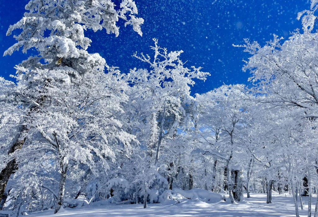 雪の脊梁、プルシアンブルーの空、樹氷ワールドを楽しみましょう!!
